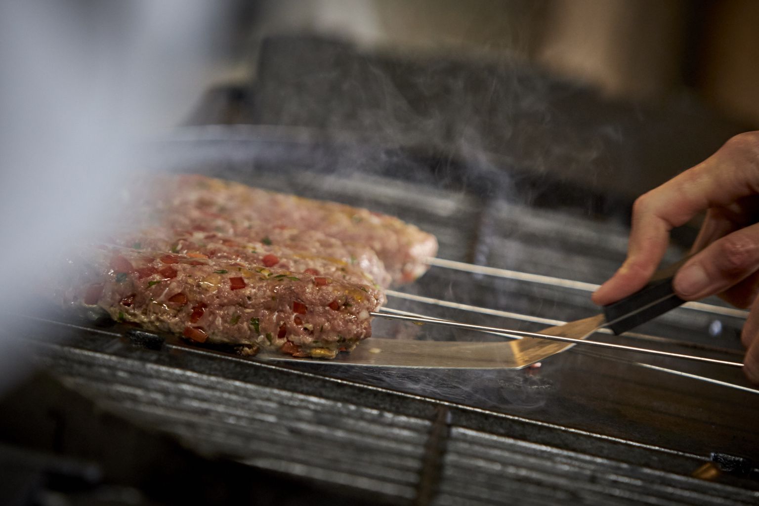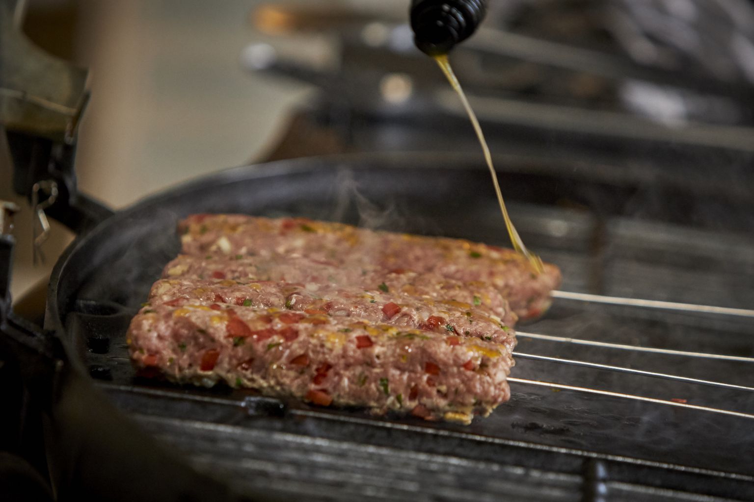 Mix the lamb mince with the diced onion, capsicum, walnuts, parsley, chopped mint, cumin, cinnamon, and a pinch of salt in the plastic tray the mince came in. Using your fingers, push the mixture into the tray and then refrigerate to firm up.