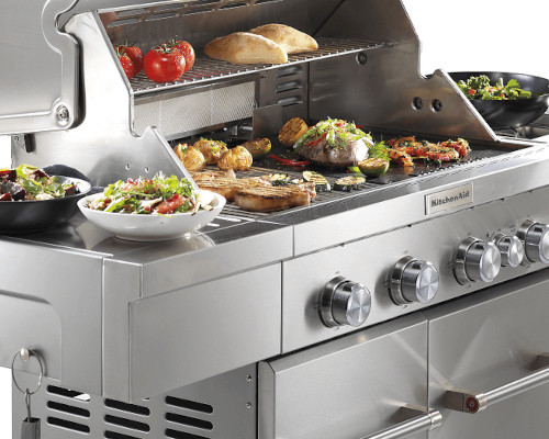 KitchenAid technology gives this BBQ the ultimate temperature and cooking control. Angled flame tamers and 304 Stainless Steel burners create even heat across the entire cooking surface. The KitchenAid signature control knobs are fitted with continuous ignition. The grill is made from the highest quality 304-grade stainless steel with a fully welded double skin roasting hood fitted with a large temperature gauge.