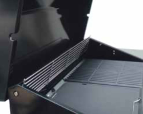 The warming rack folds away for full access to rear of cooking area. It’s easily removed for larger roasts and rotisseries.