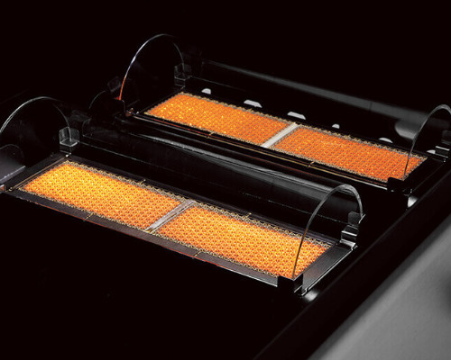 The Turbo Series’ ceramic burner and quartz dome combination delivers better cooking results by increasing radiant heat and minimising unwanted flare-ups. Radiant infrared heat in the RQT burners is far more efficient at transferring heat to food than traditional convection gas flame systems.